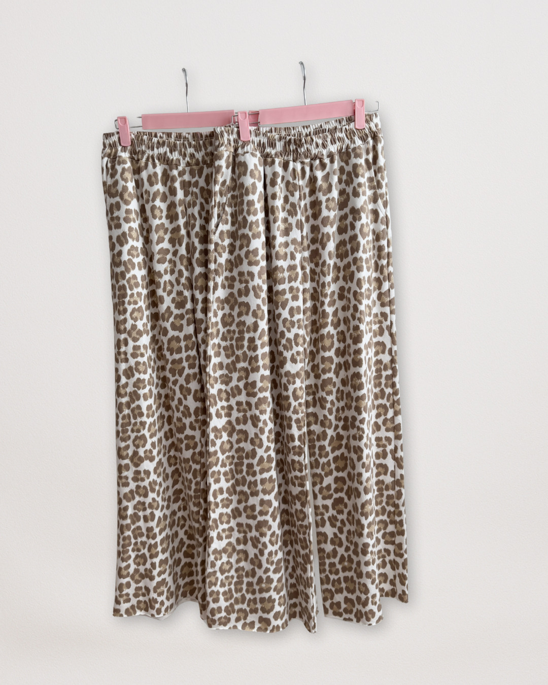 Mit ihrem soften Leo-Print in warmen Naturtönen ist sie ein echtes Statement – aber ohne laut zu sein. Der elastische Bund sorgt für maximalen Komfort, die weite Passform für lässigen Style und der Schnitt für eine wunderschöne Figur